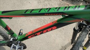 Ponúkam na predaj detský bicykel CTM TERRANO 1.0 26.Používaný, má zopár škrabancov, je plne funkčný ,po servisnej kontrole. Bicykel má hliníkový rám,stojan, odpruženú prednú vidlicu, radenie SHIMANO, pedále SHIMANO, páčkové radenie s prevodmi 3x7,kotúčové brzdy. Sedadlo je nepoškodené, nepotrhané.