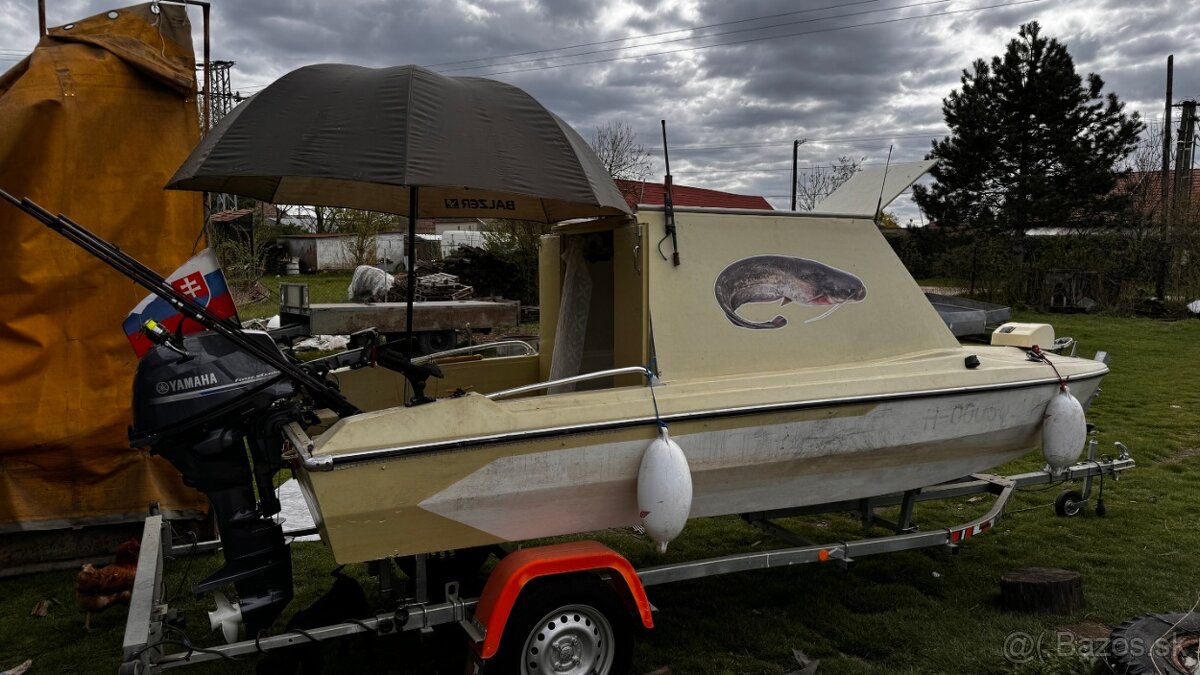 Čln katamarán s kajutou + nový motor + sonar ZNÍŽENÁ CENA
