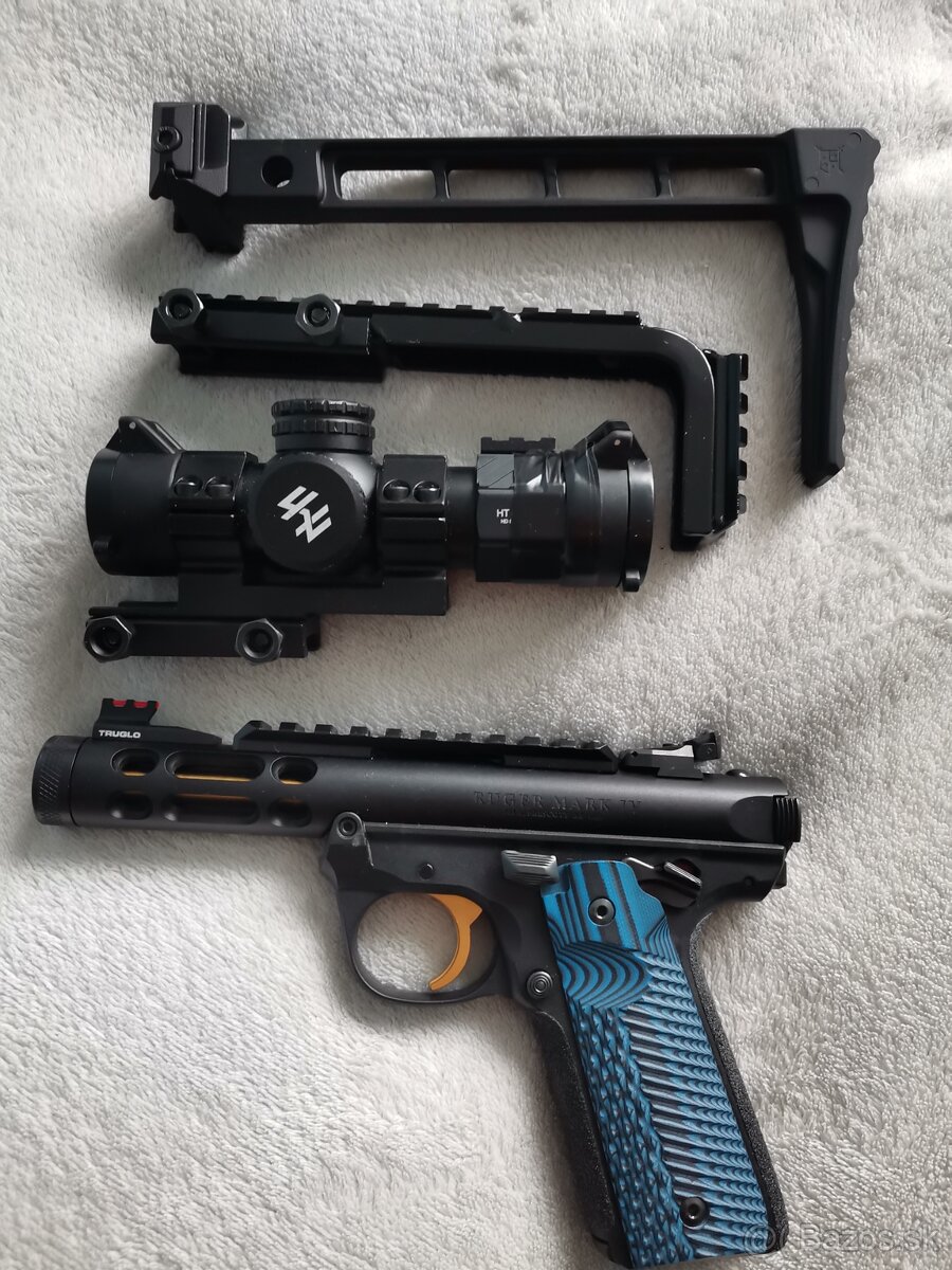 Predám malokalibrovú pištoľ Ruger mark IV 22/45 lite, s príslušenstvom tak ako je na foto. Takáto zostava u nás nezohnatelná.( vlastná výroba). Pištoľ je v záruke, vystrelených presne 50 nábojov CCI. Vianočná akcia... komplet za 800 eur. Viac info po telefóne.