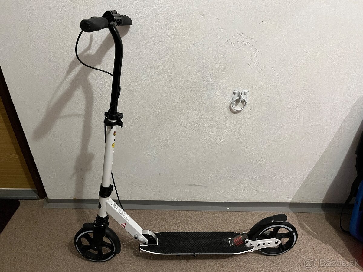 Vpredu a vzadu odpružená pre príjemný pocit z jazdy Kvalitný hliníkový rám so zatvoreným rýchlozatváracím mechanizmom a bezpečnostným uzáverom umožňuje pohodlný transport 200 mm High Rebound kolieska s kvalitnými guľôčkovými ložiskami Abec-9 4 nastaviteľné polohy rýchloupínacích riadidiel s bezpečnostným uzáverom Dopredu vysunuté riadidlá a sklápacie ergonomické rukoväte s bezpečnostným uzáverom Mimoriadne veľké stúpadlo s protišmykovým; silikónovým povrchom Trecia brzda na zadnom kolese, bočný stojan a predný blatník Max. nosnosť: kategória A – 100 kg Tvrdosť kolies: 82A Rozmery Rozložená: cca 99,5 x 37,5 x 104 cm (D x Š x V) Zložená: cca 84,5 x 13 x 35 cm (D x Š x V) Výška riadidiel: nastaviteľná od cca 90 do 104 cm