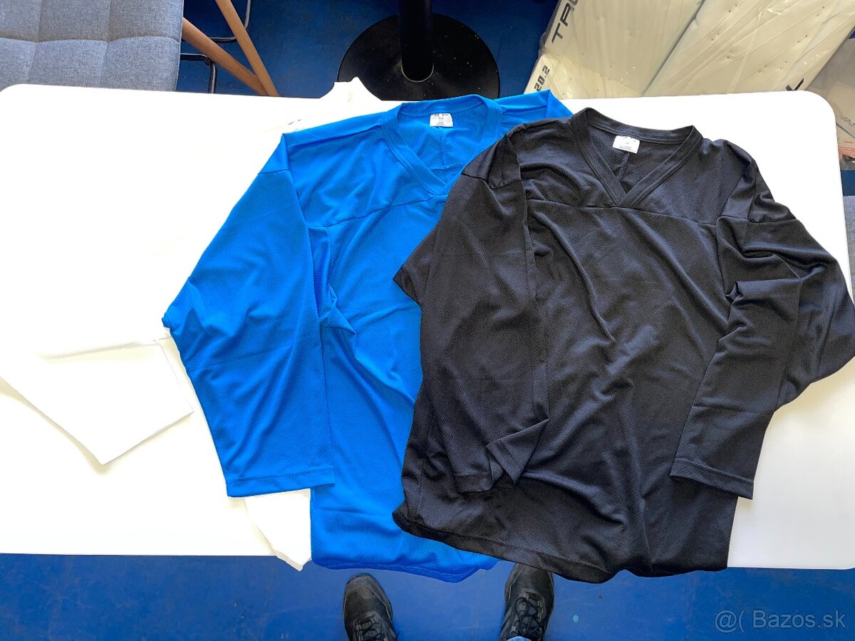 Ponúkam na predaj nové, nepoužité hokejové tréningové dresy vo farbe a veľkosti čierna S, biela S a modrá M.