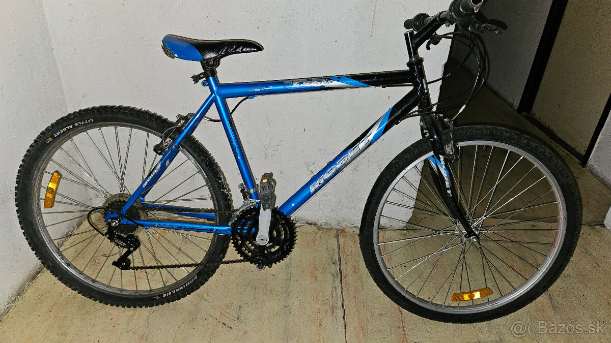Predám menší horský bicykel vhodný pre väčšie dieťa. od 140 cm: nutný základný servis, zrejme aj výmena plášťov.