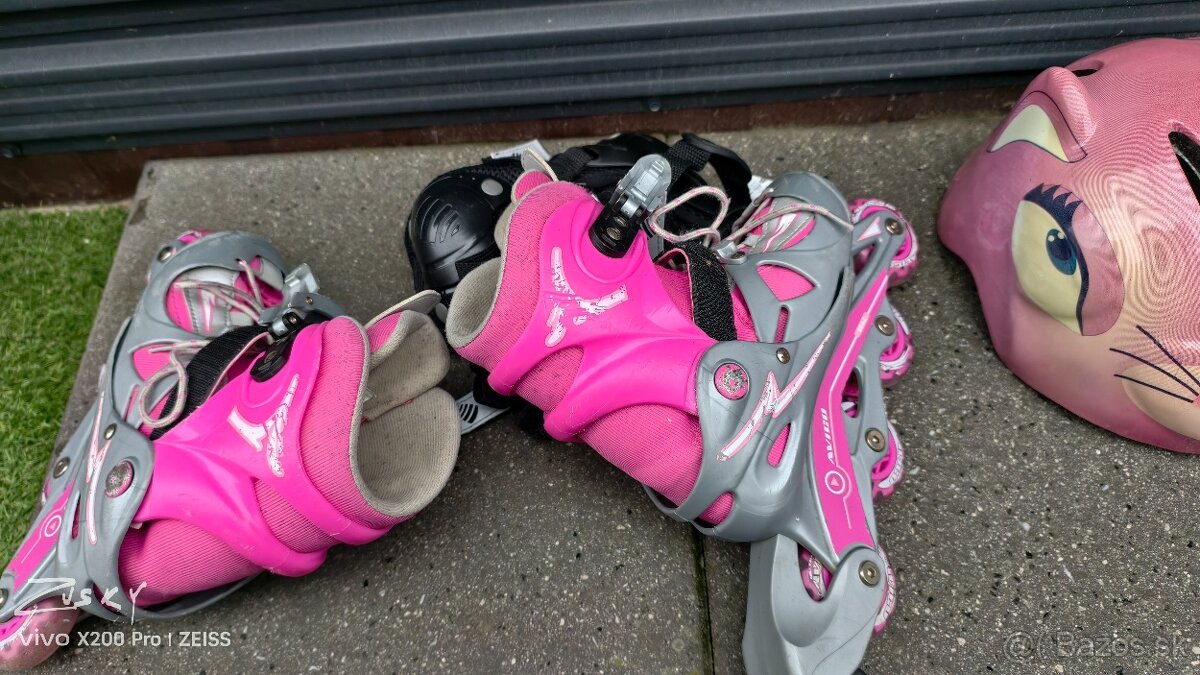 Zachovalé kolieskové korčule + prilba + chrániče / veľkosť nastaviteľná 30-33/.,