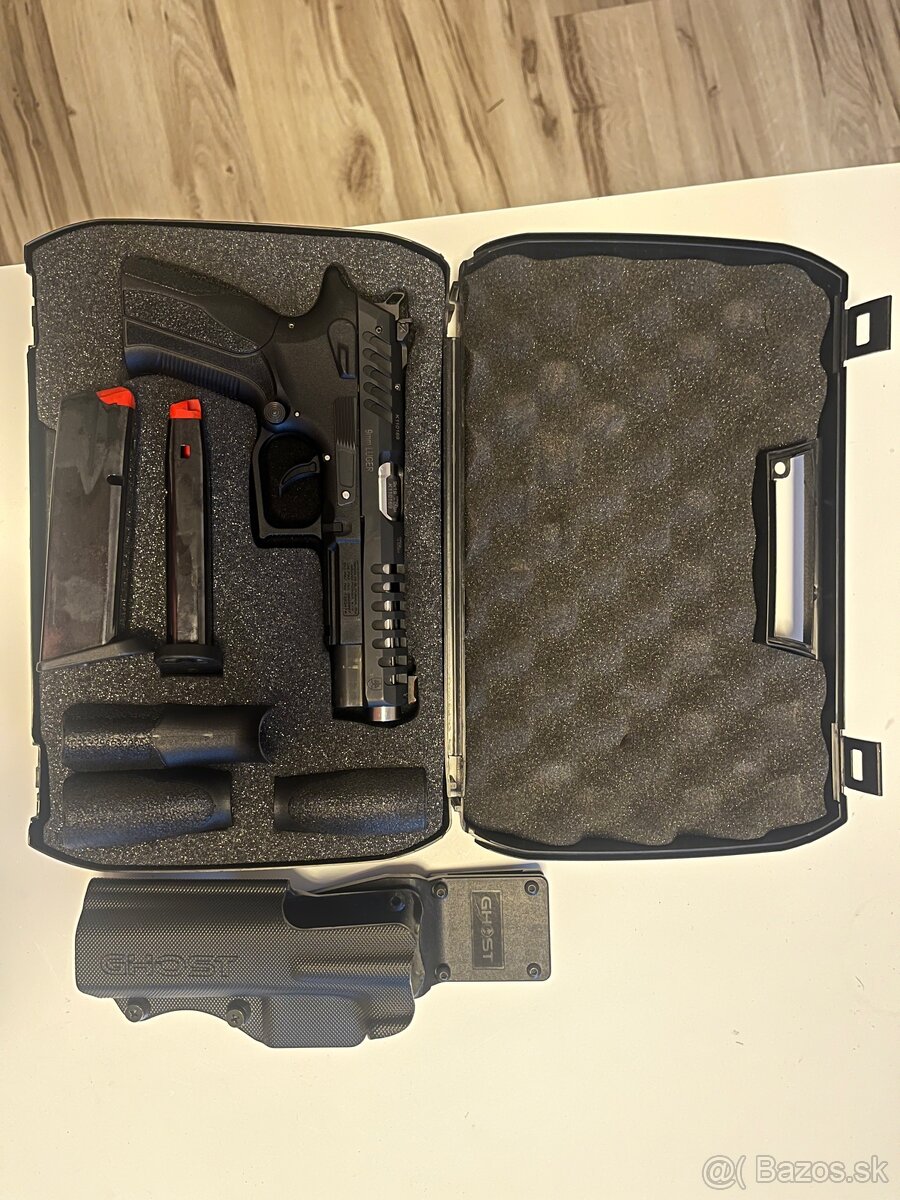 Predám pištoľ Grand Power X-Calibur, kaliber 9x19. K zbrani je všetko, čo bolo z výroby: dva zásobníky, tri výmenné chrbty pažbičky,sada plochých a zväčšených ovládačov poistky, strelecké púzdro zn. GHOST určené pre ľavákov.