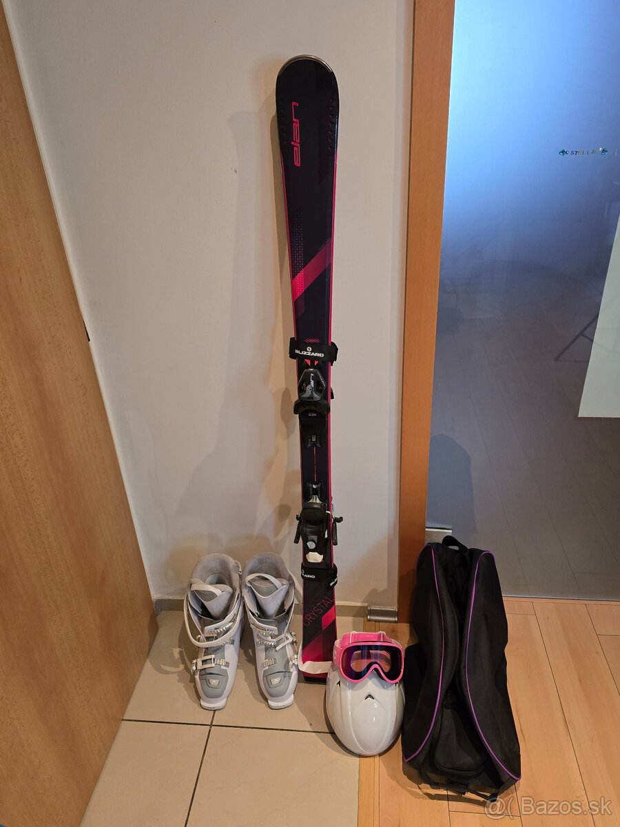 Dámsky lyžiarsky set – lyže ELAN CRYSTAL 152 + lyžiarky HEAD 26–26,5 (EU ~39) + okuliare POC Retina Clarity Comp – ako nové