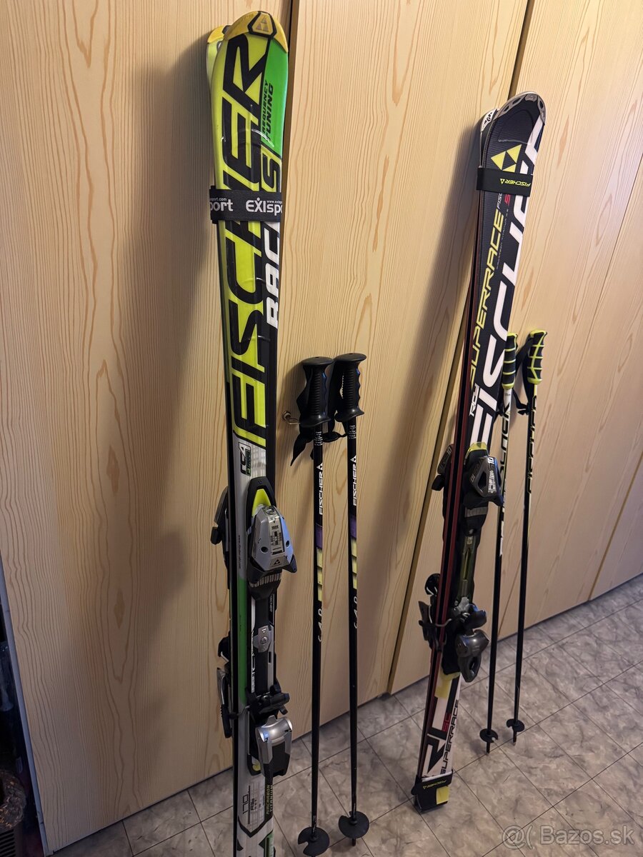 Predám použitý kompletný lyžiarsky set Fischer (2 x lyže s palicami - 165 a 170 cm) + Lyžiarky Dolomite (veľkosť 9), rukavice, prilba, taška na lyžiarky, lyžiarska bunda