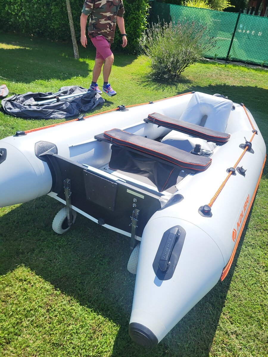 Predám nafukovací čln kolibrik s pevnou podlahov a doplnkami pár krát na vode.Stojan na sonar v predu sedačka koliečka potiahnuté lavičky tažka