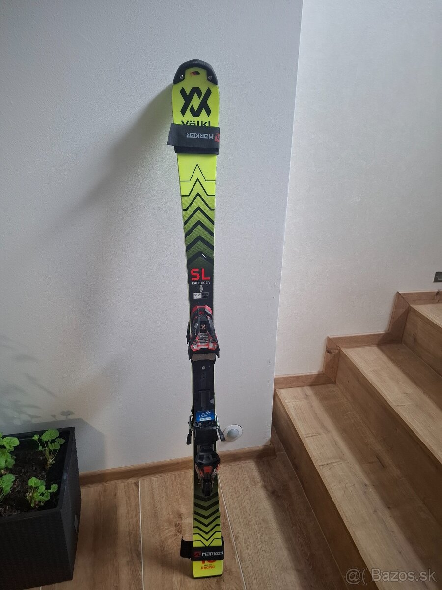 Predám lyže volkl race tiger 2 roky stare, velkost 143 radius 10. Viazanie Marker 12 din