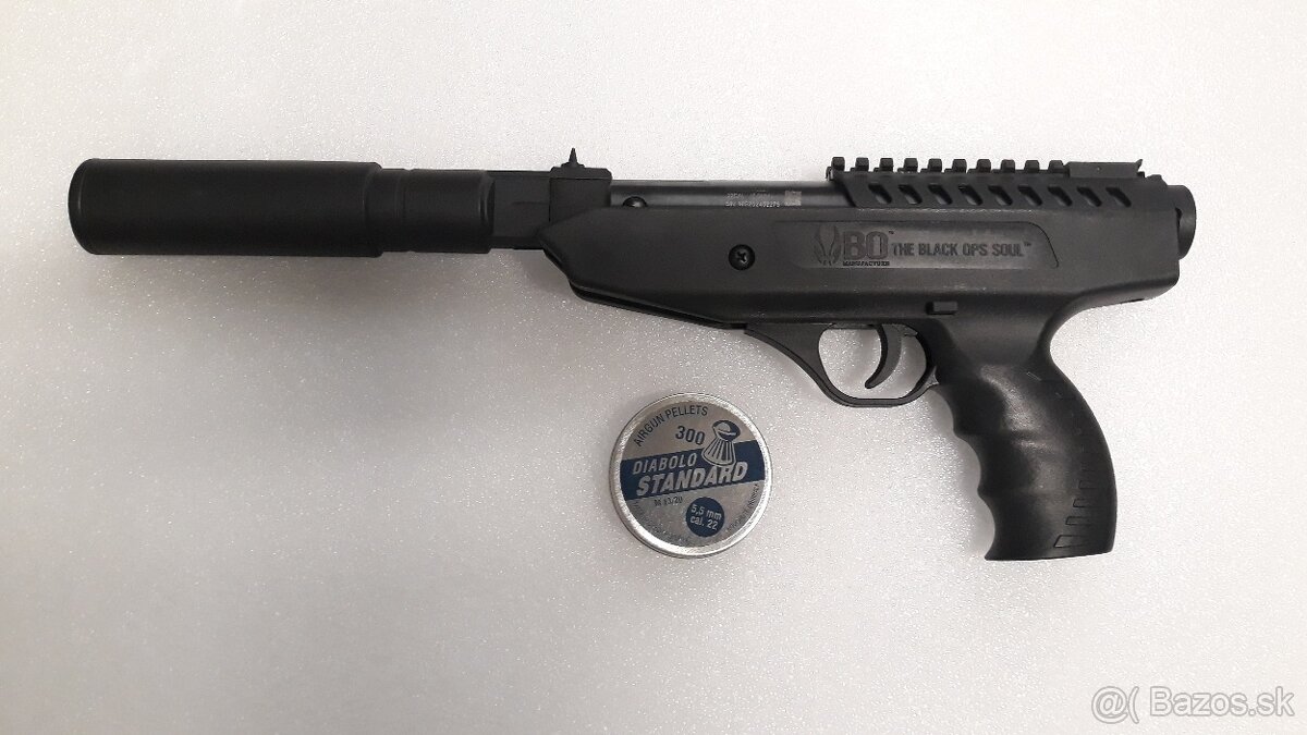 Predám málo používanú pružinovú vzduchovú pištoľ B.O. Langley Hitman kal. 5,5 mm bez montovateľnej pažby, pažbu chcem použiť na inú pištoľ. K nej zvyšných cca 200 diaboliek. Dôvod predaja, mám inú.