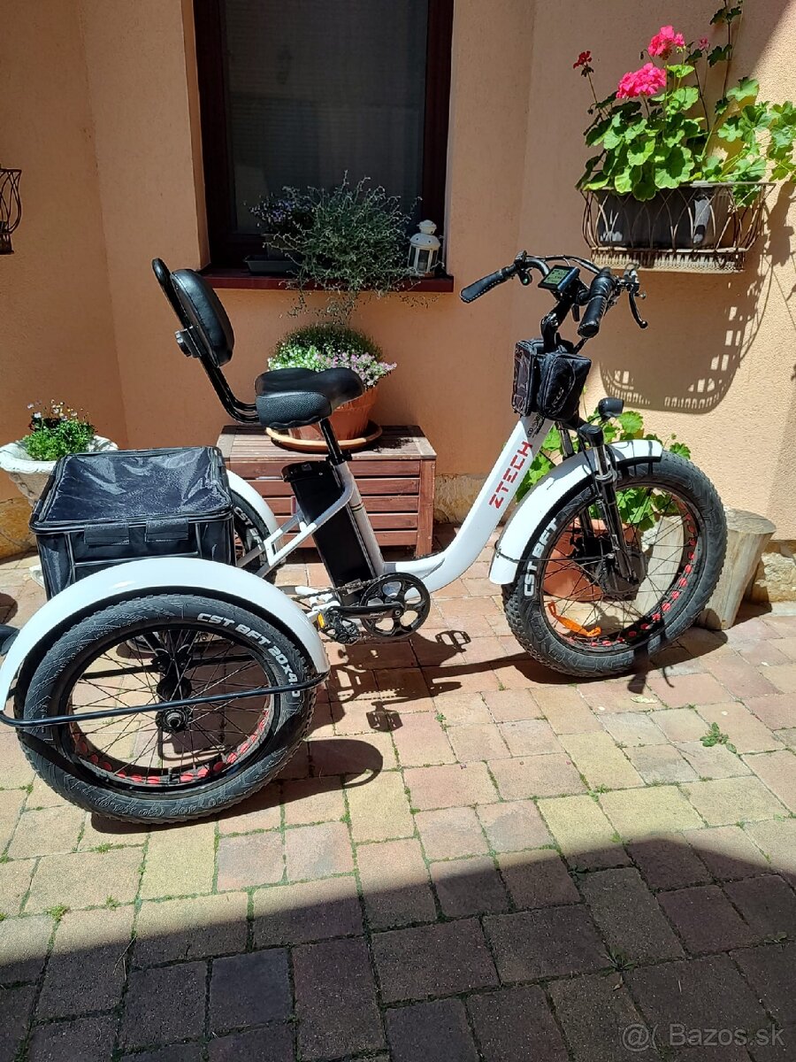 Predam elektricku trojkolku, malo pouzivanu, najazdenych necelych 500km. Motor Bezkefkové/ TK.M01.250X / Truckrun, vykon 250W, maximalna rychlost 25km/h, dojazd 45km, nosnost 110kg, kotucove brzdy, kolesa 20", Li-ION bateria 16 Ah, 48V