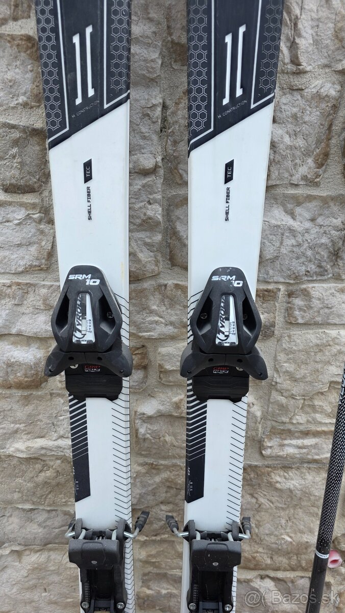 Pánske jazdené lyže s viazaním a palicami 163 cm v dobrom stave.