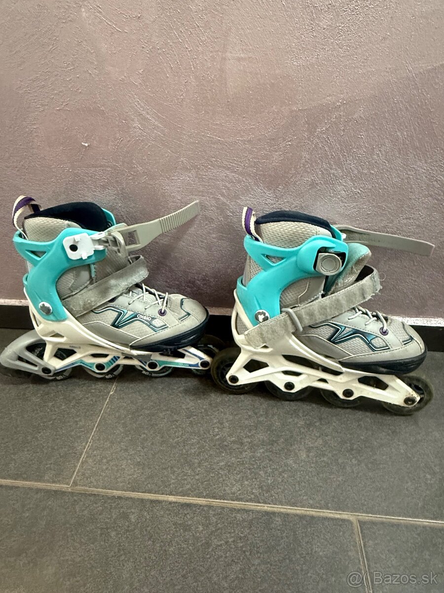 Predám kolieskové korčule s miernymi známkami opotrebovania,sú nastaviteľné veľkosti od 29-32. Len osobný odber.