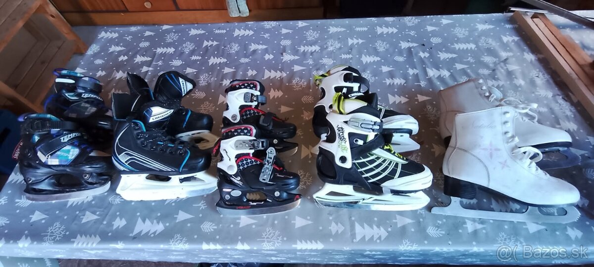 Predám používané korčule veľkosti od 27 do 38, tri páry sú s posúvateľnou veľkosťou a dámske korčule č. 41. Pár po 10 eur.