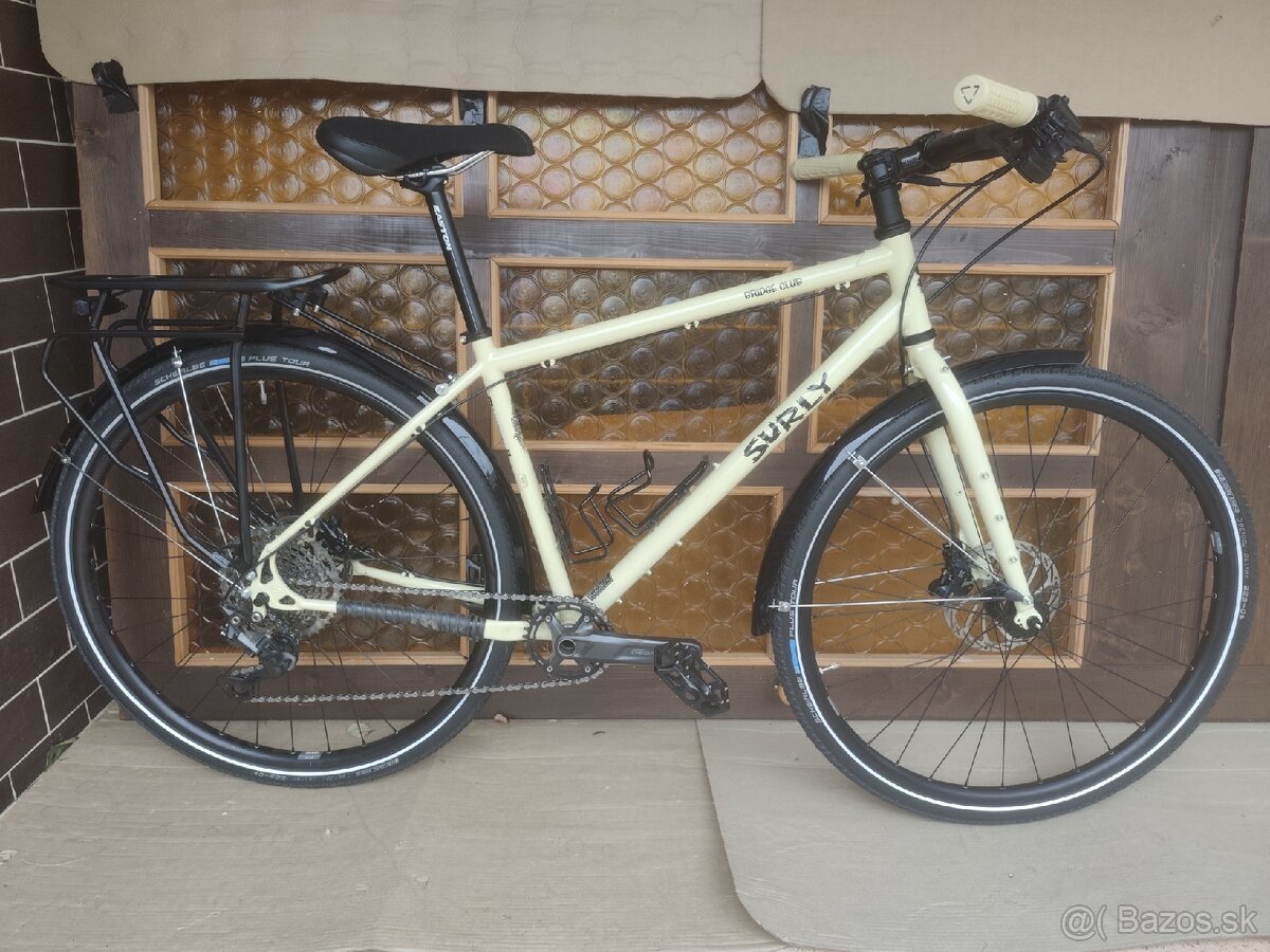 Predám expedičný špeciál americkej značky SURLY. Postavený na 29er kolesách s vnútornou šírkou rafikov 25mm, nábojmi novatec a odolnými plášťami schwalbe marathon. Rámový set pojme všetky priemery kolies do šírky pneu až 2,8 ( odskúšané 27,5x2,8). Riadidlá cinelli double trouble. Predstavec Thomson Elite 70mm. Blatníky SKS. Nosič racktime. Hlavové zloženie bbb na priemyselných ložiskách. Sedlovka Easton, pedále bbb. Radenie Shimano ZEE 10speed, šalter deore, kazeta 11-48z, kľuky deore 32z. Brzdy štvorpiesty SLX. Kotúče 180-160mm na 6dier. Bike má nájazd veľmi nízky do 300km aj to v inej špecifikácií na 27,5 kolesách. Je ako nový. Foto je aktuálne.