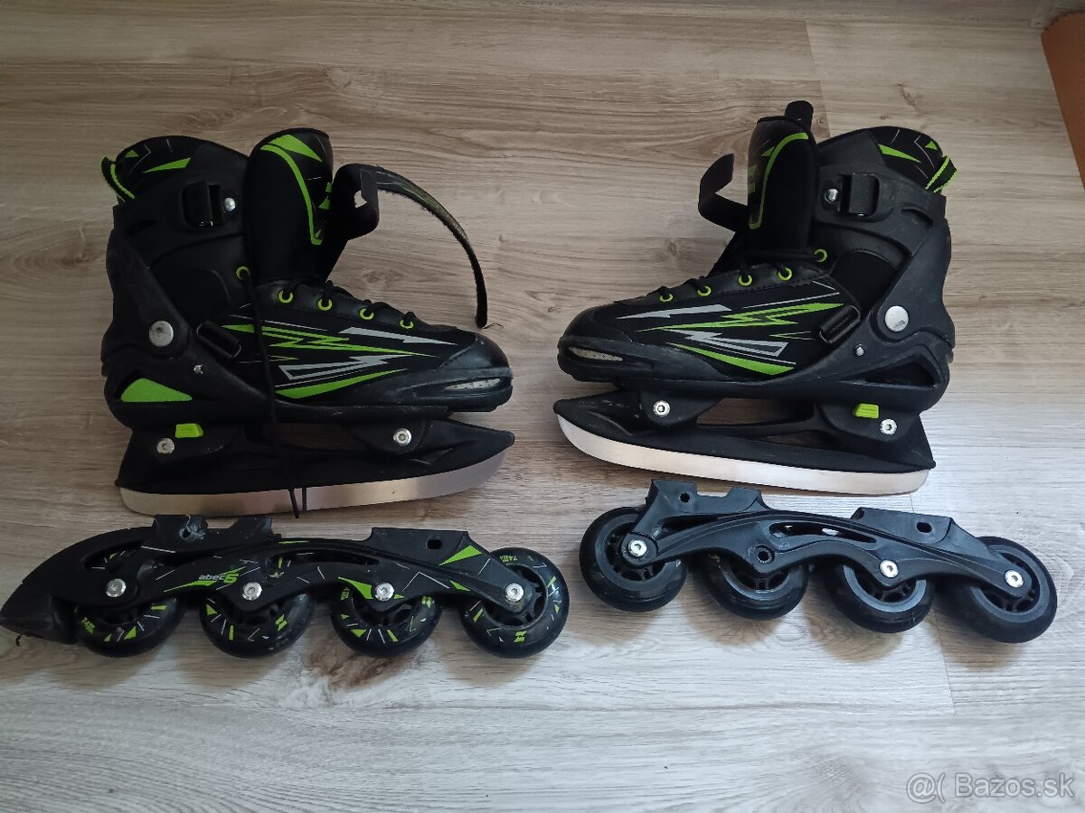 Korčule 2v1 - [30.12. 2025]Ahoj predám tieto pekne korčule veľkosť 38 sú nabrúsené stihol som sa na nich naučiť korčuľovať na ľade no už nie na ceste budem rad keď niekomu poslúžia na cene sa vieme dohodnúť pripadne ich aj doviesť podľa toho že kde☺️
