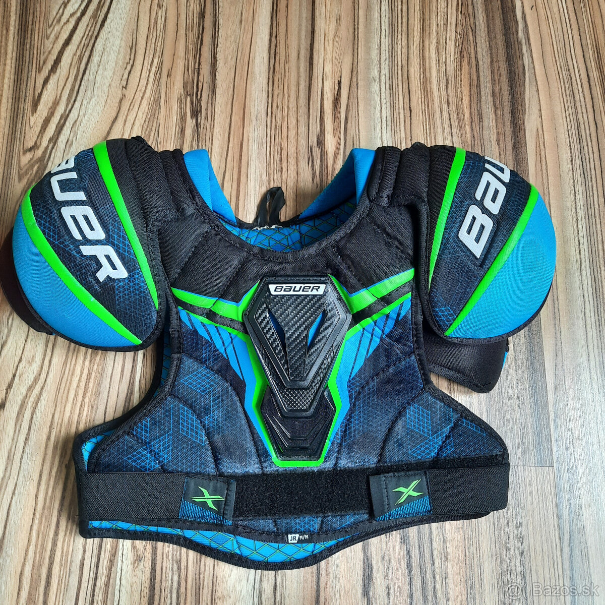 Predám sadu hokejových chráničov značky Bauer JR X, veľkosť medium. Vhodné pre hráčov od cca. 4.triedy do 6-7. ročníka. Sada pozostáva z chráničov ramien /vesta/, chráničov lakťov, rukavíc a chráničov kolien. Chrániče boli používané 1 sezónu a sú v zachovalom stave. Cena za set cháničov je 140 eur.