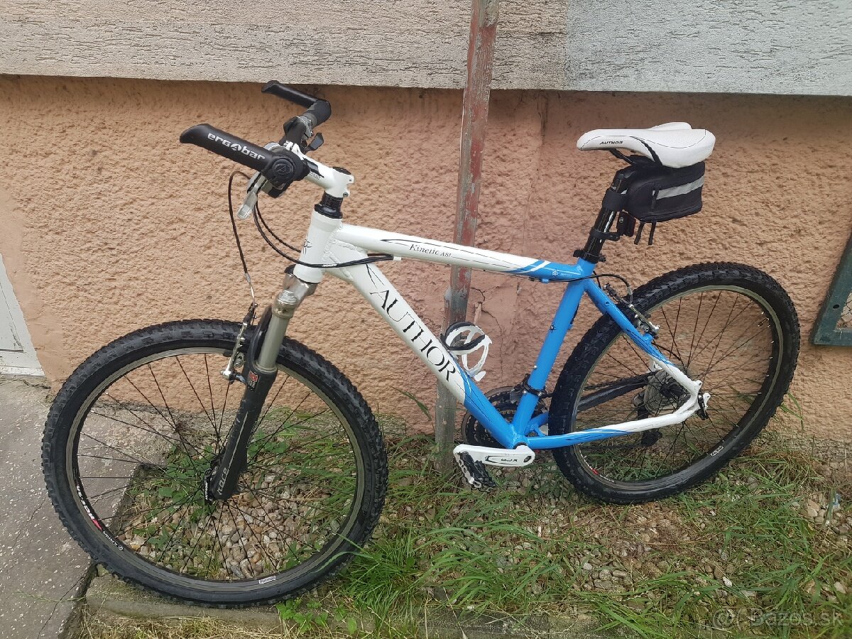 Hardtail MTB bicykel, veľkosť rámu 18", kolesá 26", výbava Shimano Alivio, málo jazdený (po jednoduchom teréne-spevnené komunikácie a lesné cestičky, najazdené cca 1200 km, v tip-top stave, skoro ako nový-na ráme v zadu len jeden/dva malé škrabančeky) a pravidelne servisovaný. Pôvodna výbava-špecifikácia viď. priložené foto. Vymenená pôvodná vidlica (na foto demontovaná biela vidlica, vymenená tesne po kúpe) za pohodlnejšiu vzduchovú Rock Shox Duke Race (aktuálne osadená na bicykli, pozn. pokazené uzamykanie). Predám spolu s prilbou Author-nenosená, vyskúšaná iba v predajni, 4ks nové duše, namontovaný Author chránič rámu pod reťazou, nové Author ergonomické gripy, Author rohy, Author držiak na fľašu a Author podsedlová taška (možnosť zipsom zväčšiť objem). Obhliadka bicykla naživo možná. Prosím kontaktovať iba mailom. Inzerát platný do zmazania. V prípade seriózneho záujmu možnosť doviezť na trase SA-NR, SA-LV, SA-ZA.