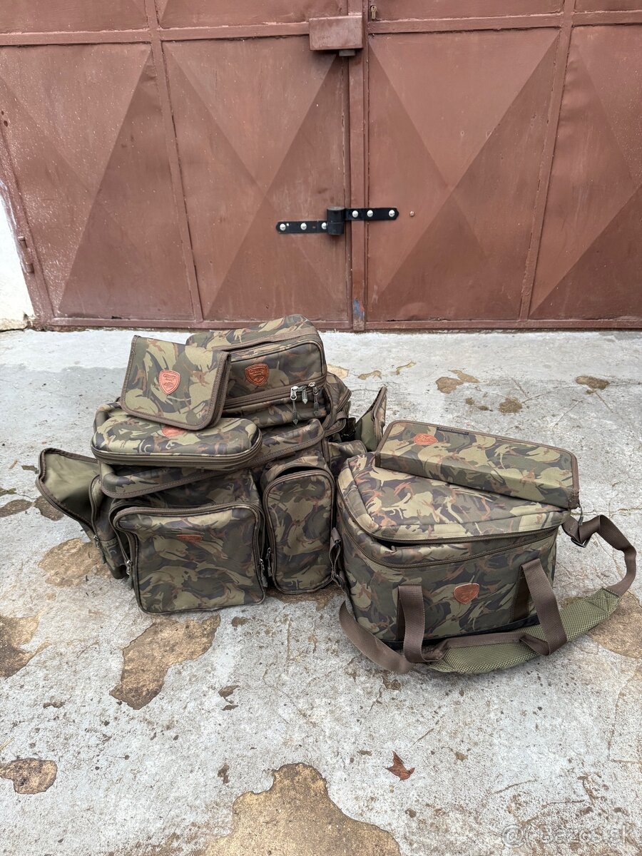 Dobrý deň predávam komplet tašiek od giant fishing. Komplet obsahuje veľkú tašku s pevním vtákom ktorý sa dá použiť ako stolík na kolena pri robeni nadvezcov, chladiaca taška, organizér na bizuteriu, peracnik na nadvezce a púzdro na doklady. Všetko bolo kupované tento rok v máji.