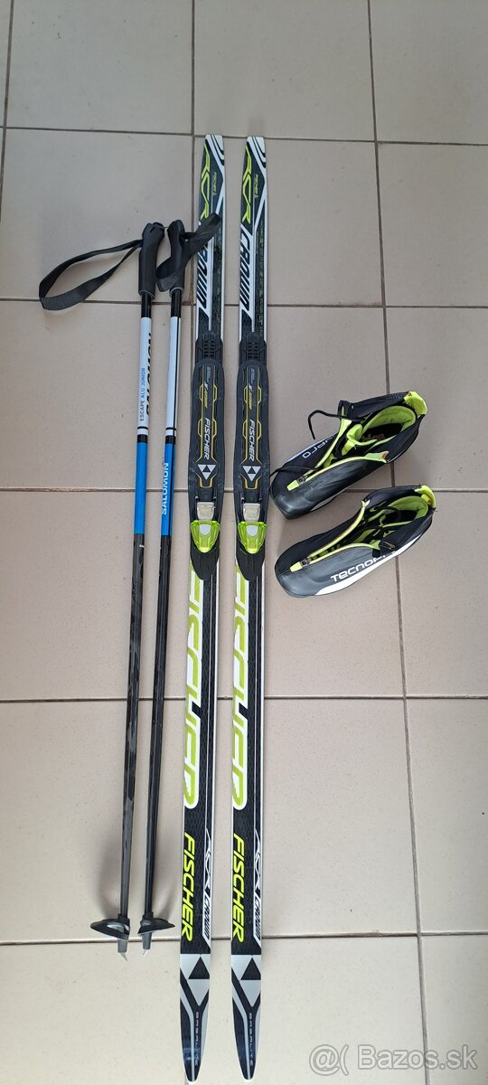 Predám spolu: detské bežky Fischer rcr crown 137cm - supiny, topanky Tecno veľkosť eu 34, palice salomon 105 cm,
