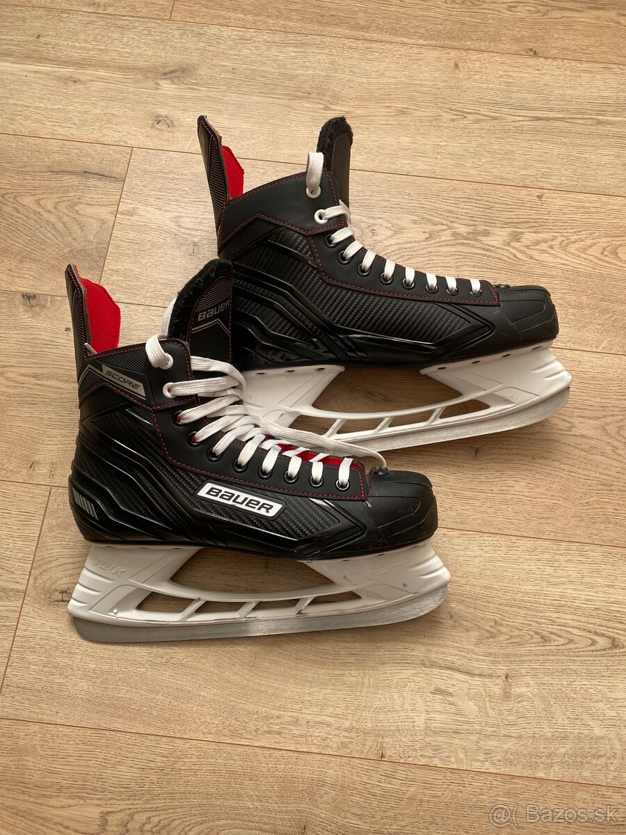 Predám 2 roky používané korčule Bauer Score, prevažne používané na VeKo hokejka+puk vo veľmi dobrom stave. Veľkosť korčuľ je 10 (45,5), 28,5 cm.