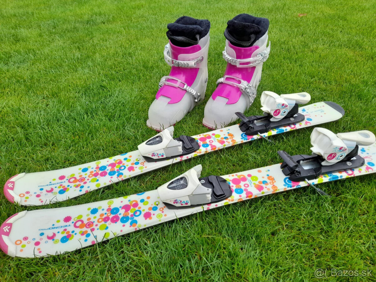 Predám dievčenské lyže lyžiarky vo veľmi dobrom stave, Lyže 80cm Tecno Pro sweety s nastavovateľnými lyžiarkami Roxa Chameleon veľkosť 29-34, tj 180 - 215 mm. Nastavené, všetko bezchybné, sklznica nezničena...Použité pár krát dcéra sa na tom učila lyžovať.Máme k tomu prípadne aj prilby na predaj, pozrite ďalší náš inzerát.