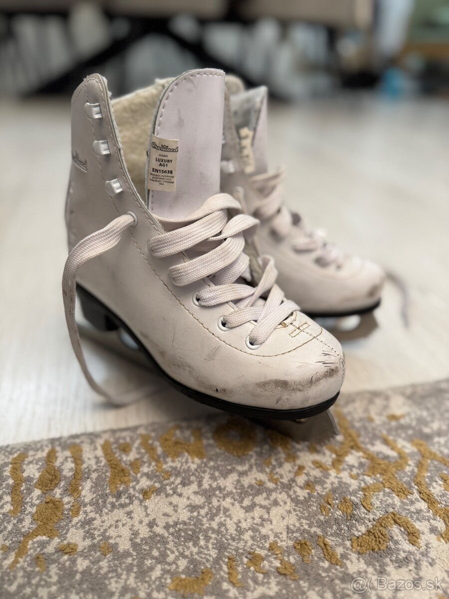 Predám dievčenské korčule na ľad veľkost 34. Vnútro je zateplené, nože sú z nerezovej ocele, model Luxury Crovned, klasický model na šnurovanie.