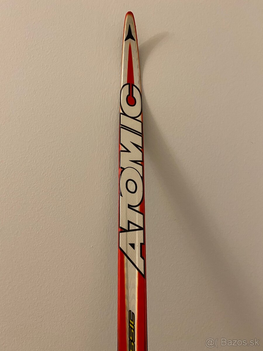 Vid foto, bezky s viazanim Atomic 201 cm, topanky Fischer Combi 5000 cislo 43