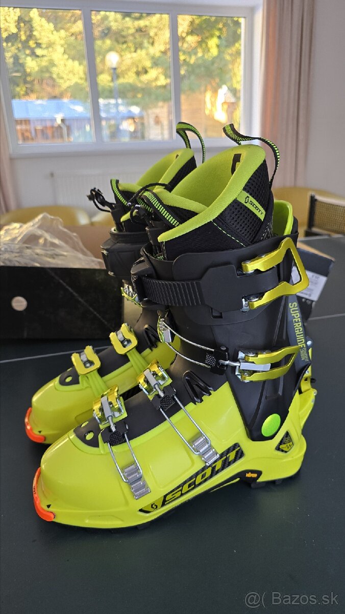 Lyžiarske topánky SUPERGUIDE CARBON limetkovo zelené/čierne. Karbónové lyžiarky Scott Superguide ponúkajú stabilitu a presnosť pri zjazdoch a pohodlie a mobilitu pri výstupoch.