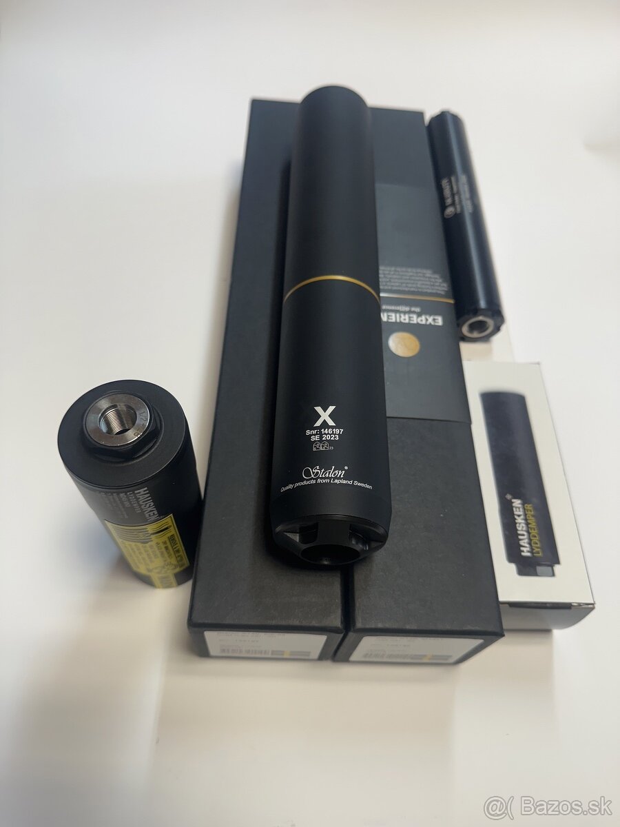 Predám nové tlmiče hluku ráže od 22LR až po guľové magnumové rôzne značky (stalon,hausken M.KRUTÝ atď) závit kto nemá viem narezať cena aj s krytkou a počiernenim je 120€ k nákupu je potrebný ZP a NP ďalšie info na tel. Nielsen paradox 50 (380€) ceny tlmičov sa pohybujú od 330-1000€ na 22LR 22MAG 17 Hmr 150-250€