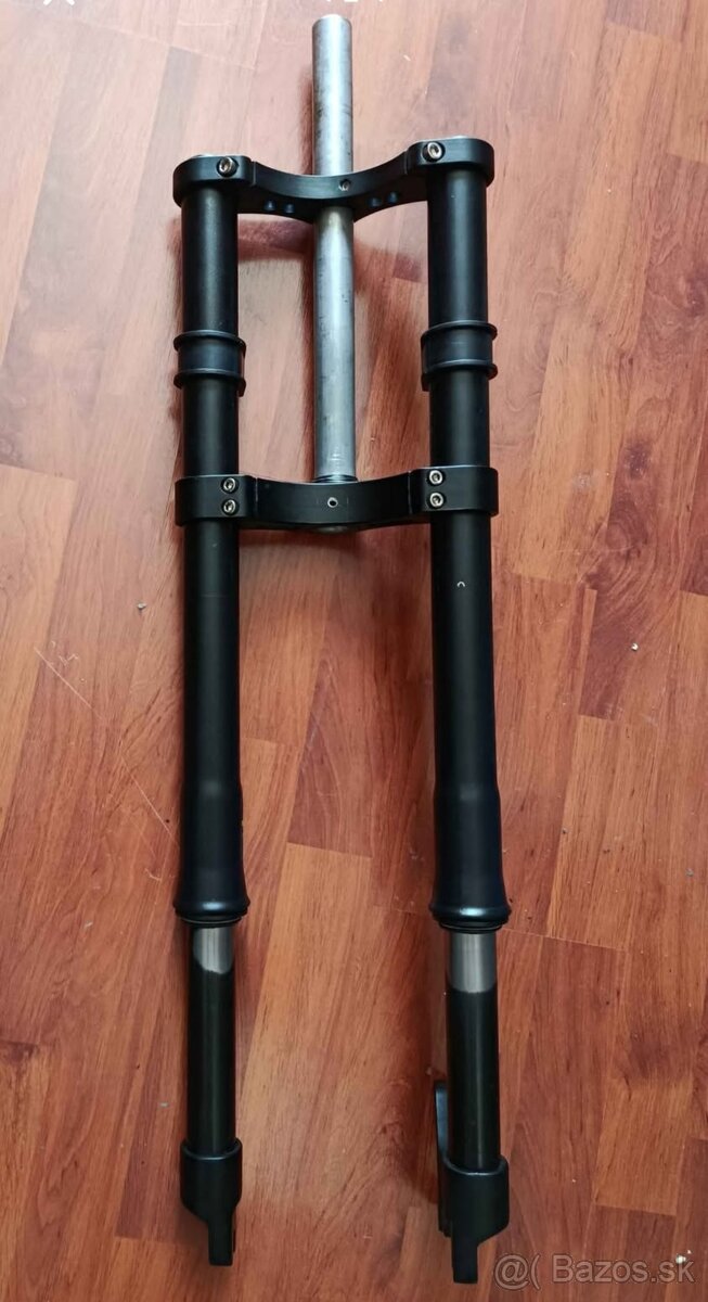 Predám túto jazdenú pružinovú vidlu z elektrického fatbajku, na 20" koleso, pre náboj 135x9 mm. Žiaľ, nemá žiadne nastavenia, ale možno niekomu poslúži. Krk rovný, priemer 28,6 mm, dĺžka cca 33 cm. BA Petržalka