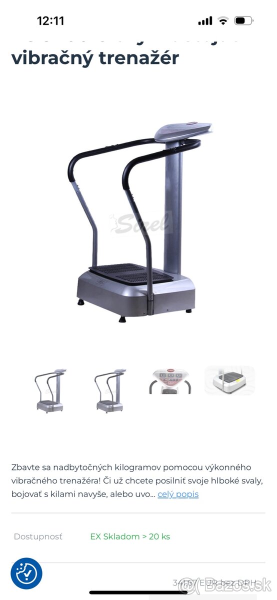 Vibračná plošina - [21.1. 2026]V perfektnom stave, vsetko funguje. Je k nej dialkovy ovladac . Ma 3 stupne od chodze cez poklus az po rychly beh. Ale da sa nastavovat aj presne na mieru ovladacom alebo manualne na dotykovom displayi. Je vyborna na prekrvenie svalstva , pali tuk na kritickych partiach stehna zadok boky a brucho. N ...