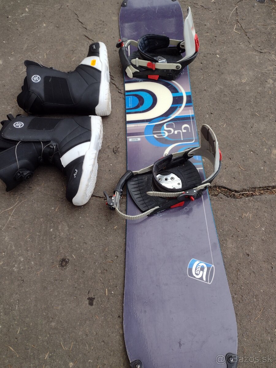 Predám snowboard s viazaním - 155 cm Cena 150 €.sklznica po servise hrany nabrusené.Obuv Stuf Boa v 43 cena 145eur