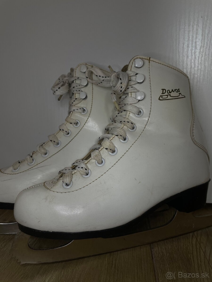 Predám detské korčule so zúbkami, veľkosť 32. Majú na sebe známky opotrebovania, nejaké škrabance, ale stále sú perfektné na korčuľovanie, hlavne pre deti, ktorým rastie noha rýchlo. Na noži je mierna hrzda, ale tá sa odstráni nabrúsením korčúľ.