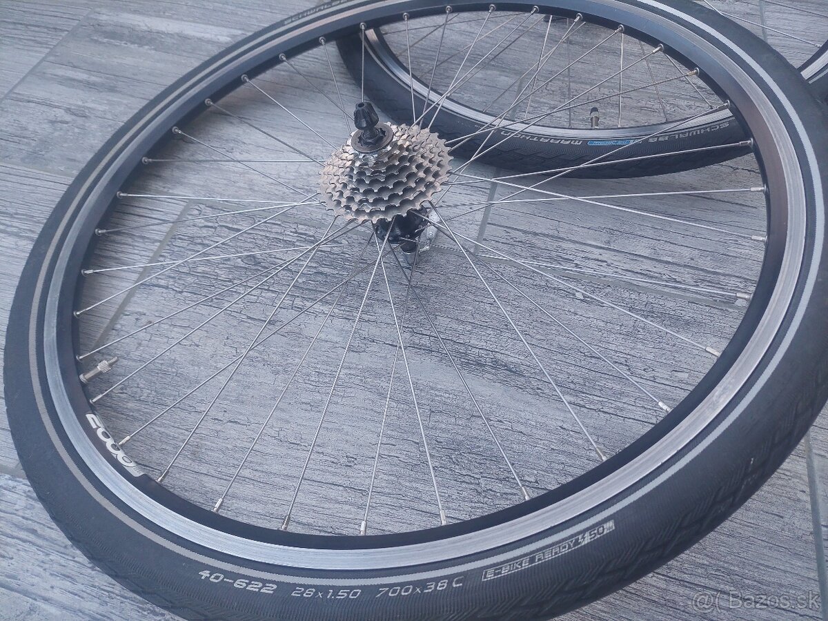 Predám 28"trekingové kolesá pre klasické vbrake brzdy.Predný náboj Shimano dynamo system,kazeta 8rýchlostná Shimano,plášte Schwalbe maraton.