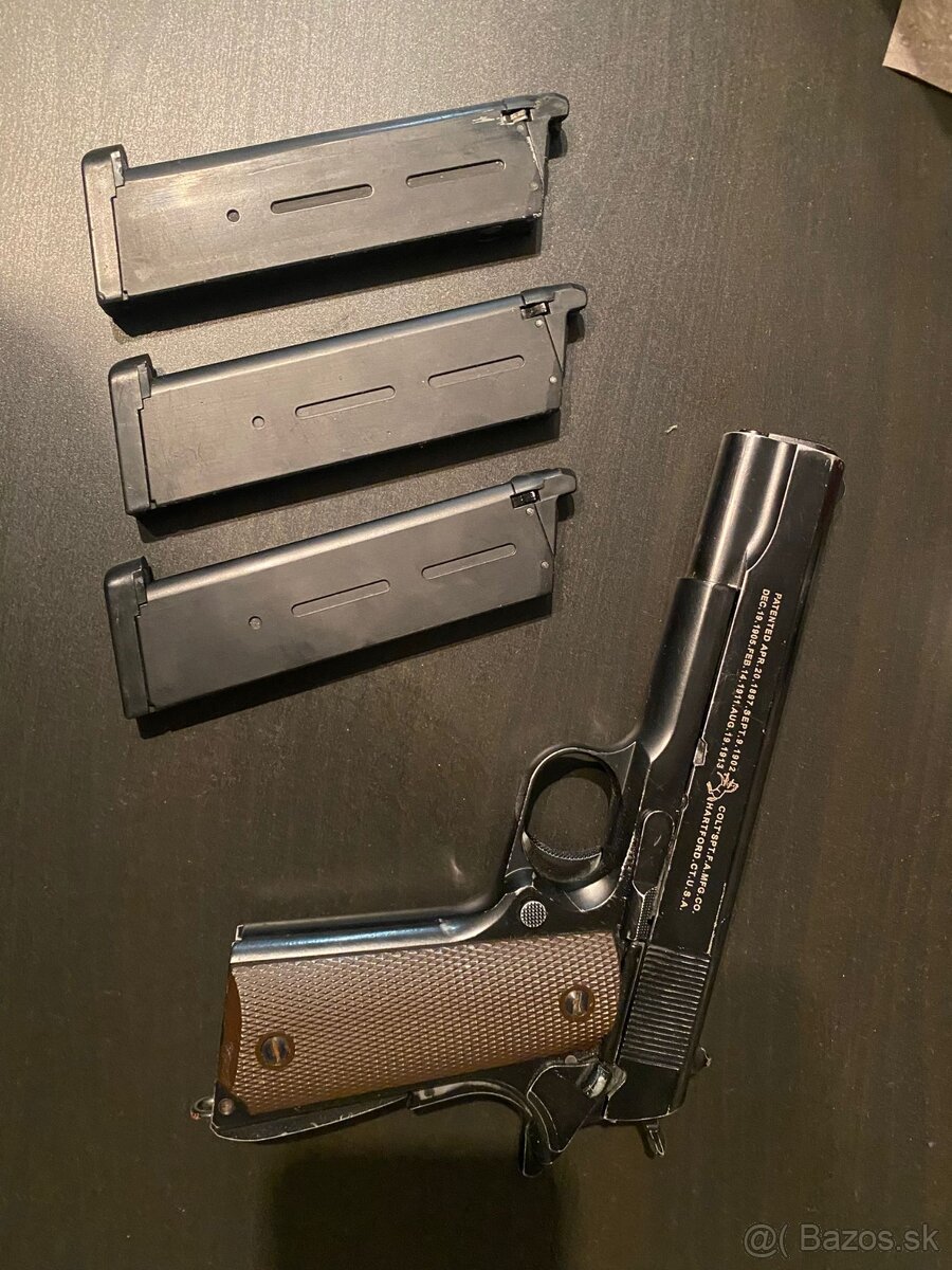 K zbrani pridám 3x zasobník + puzdro na zbraň orignál na colt 1911.