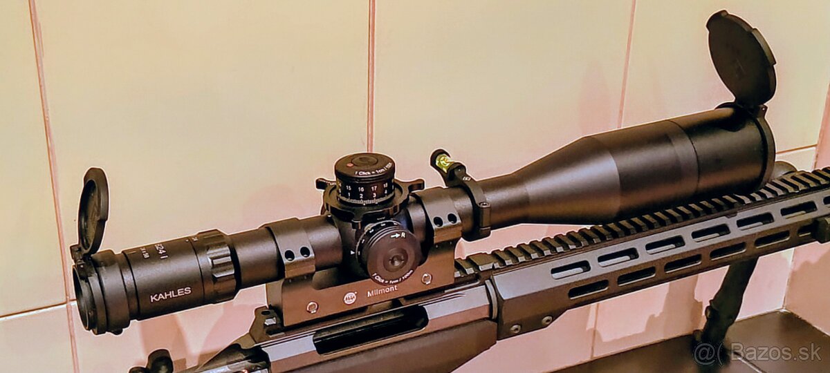 Predám puškohľad kahles k624i na montáži MAK milmont. Libela, krytky, krúžok na ovládanie paralaxy, slnečná clona všetko originál kahles.