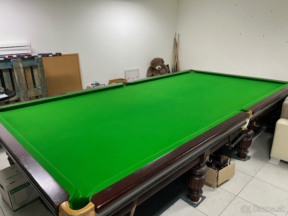 Predam profesionálny stôl na snooker s príslušenstvom: predĺženie, hrabličky, gule Aramith Tournament Champion a svetlo nad stôl