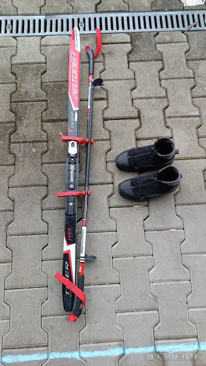 Predám komplet na bežkovanie po synovi. Topánky veľkosť 36. Bežky dĺžka 118cm, paličky dĺžka 98cm.