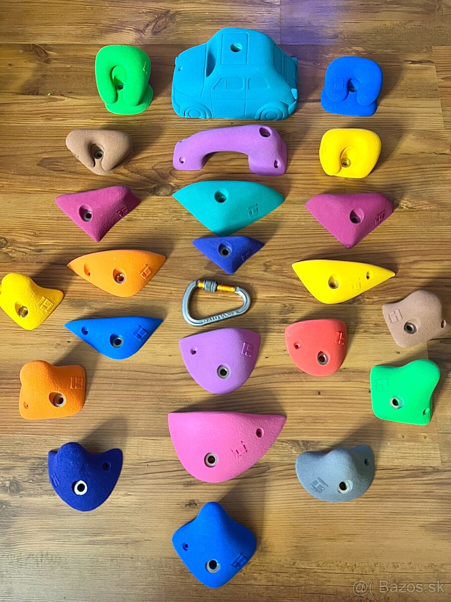 Nové dětské lezecké chyty THEREX - 21 kusů - [7.2. 2026]Prodám set nových nepoužitých chytů Therex Climbing Holds , je slevou 20%. Jedná se o madla velikosti M-XL, sada je vhodná pro děti, možnost dovýroby i jiné barevné varianty, možnost doplnění o spojovací materiál na vyžádání, karabina není součástí setu ( pouze pro porovnání velikosti - velikost kar ...