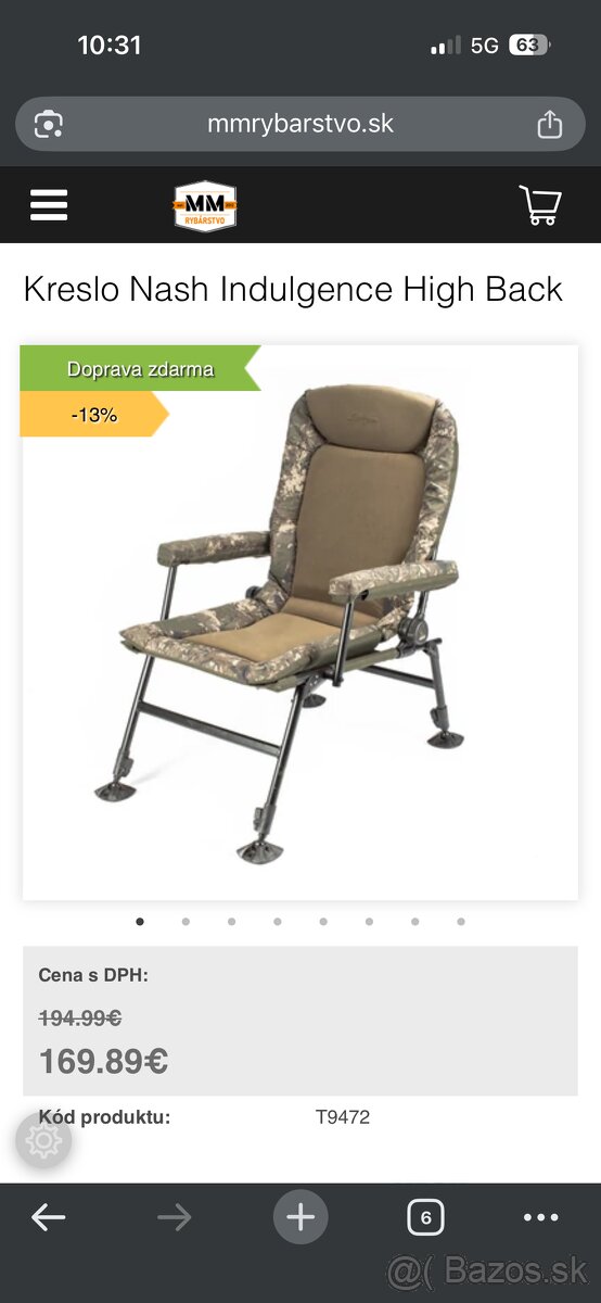 Predám extrémne pohodlné rybárske kreslo nash indulgence Hi back cena 70€ používané zachovalé
