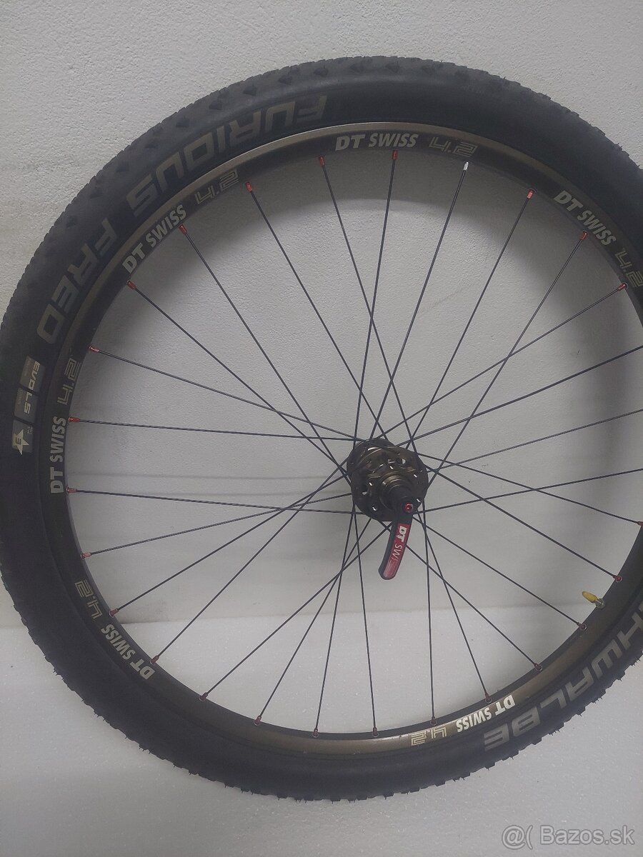 Predám predné 26"koleso,rafik DT Swiss4.2,naboj Spešl stout,oska DT Swiss,pasuje na klasické rýchloupinaky.Plášt Schwalbe Furious fred evo ls,zánovný.