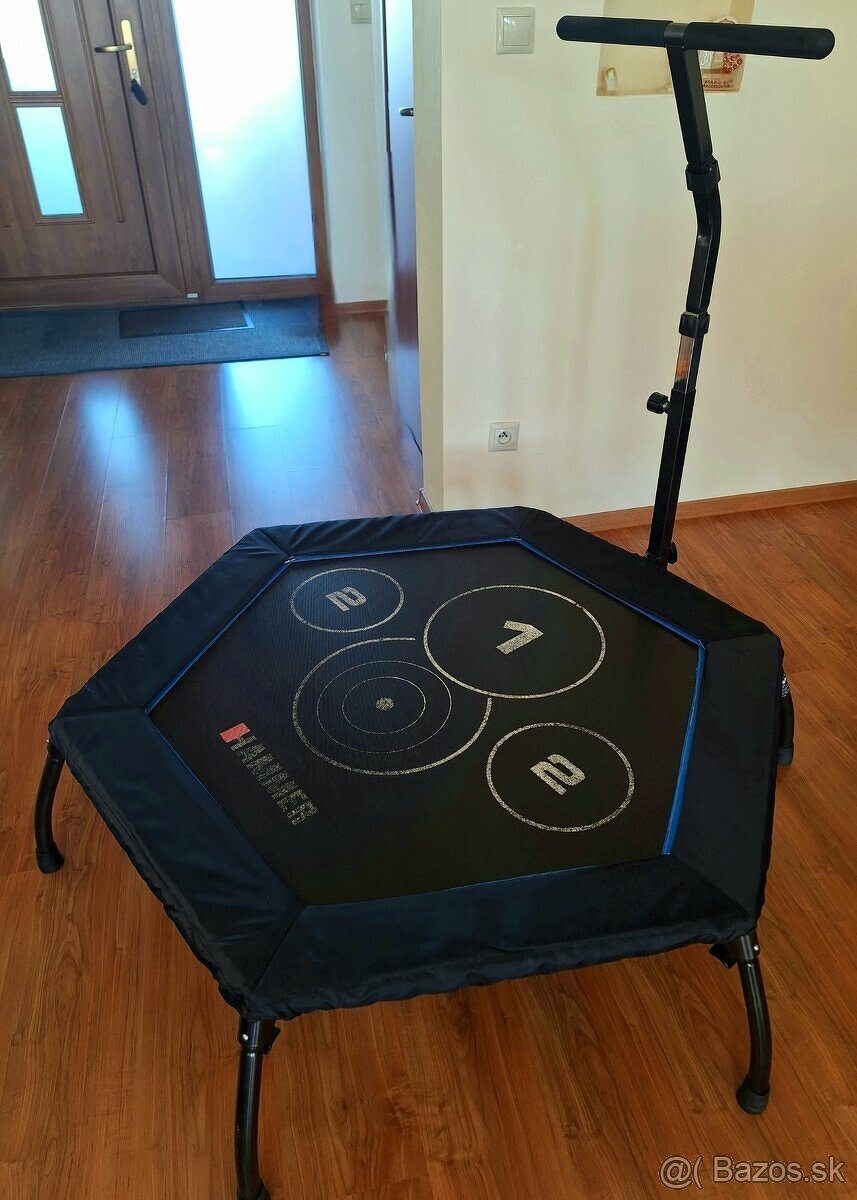 Predám trampolínu HAMMER Fitness Cross Jump, vo výbornom stave, málo používaná. Má kvalitné a pevné spracovanie s nosnosťou do 130 kg. Rukoväť je výškovo nastaviteľná, odnímateľná, nožičky trampolíny sa dajú ľahko sklopiť, preto je trampolína dobre skladná aj pod posteľ. Rozmery: 120 x 130 x 140 cm (dĺžka x šírka x výška), úžitkový priemer skákacej plochy: 98 cm, hmotnosť 13 kg. K dispozícii je tiež video s cvikmi. Pôvodná cena cez 200 EUR. Možnosť odberu v BA alebo v Hamuliakove.