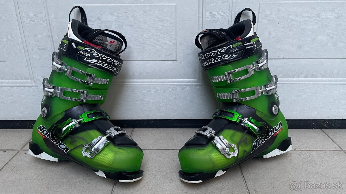 Predám kvalitné Top lyžiarky Nordica Pro, veľkosť c. 42-43/ 28 cm. Flex 130 pre pevnú nohu. Výborný stav, sú len po 1 majiteľovi. Cena nových lyžiarok je 499€. Pošlem aj Poštou.