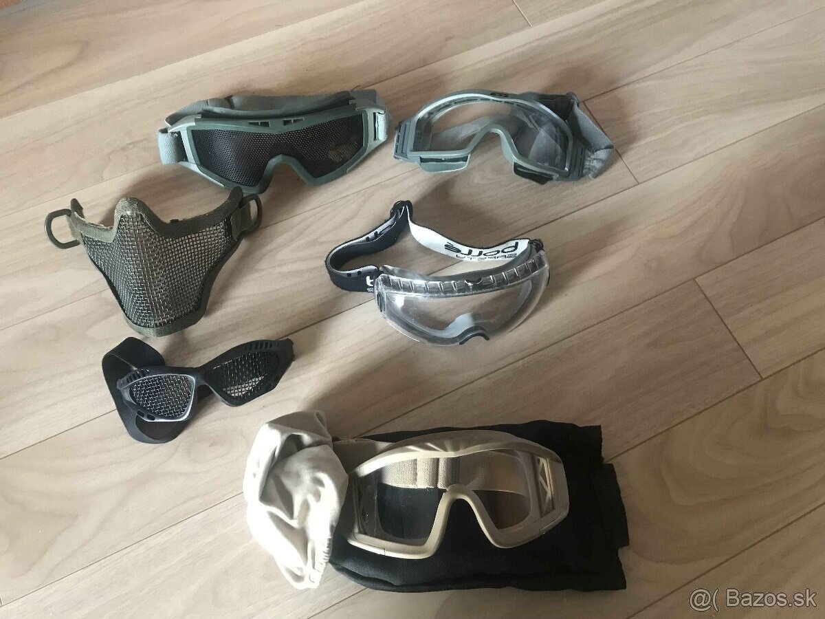 Predám okuliare ako na foto - olivové sieťkované, olivové ESS, maska na tvar sieťkovaná, Bolle, sieťkované menšie, taktické s púzdrom číre sklo + 2 x vymenitelné sklo - žlté + čierne. Spolu za 70€.