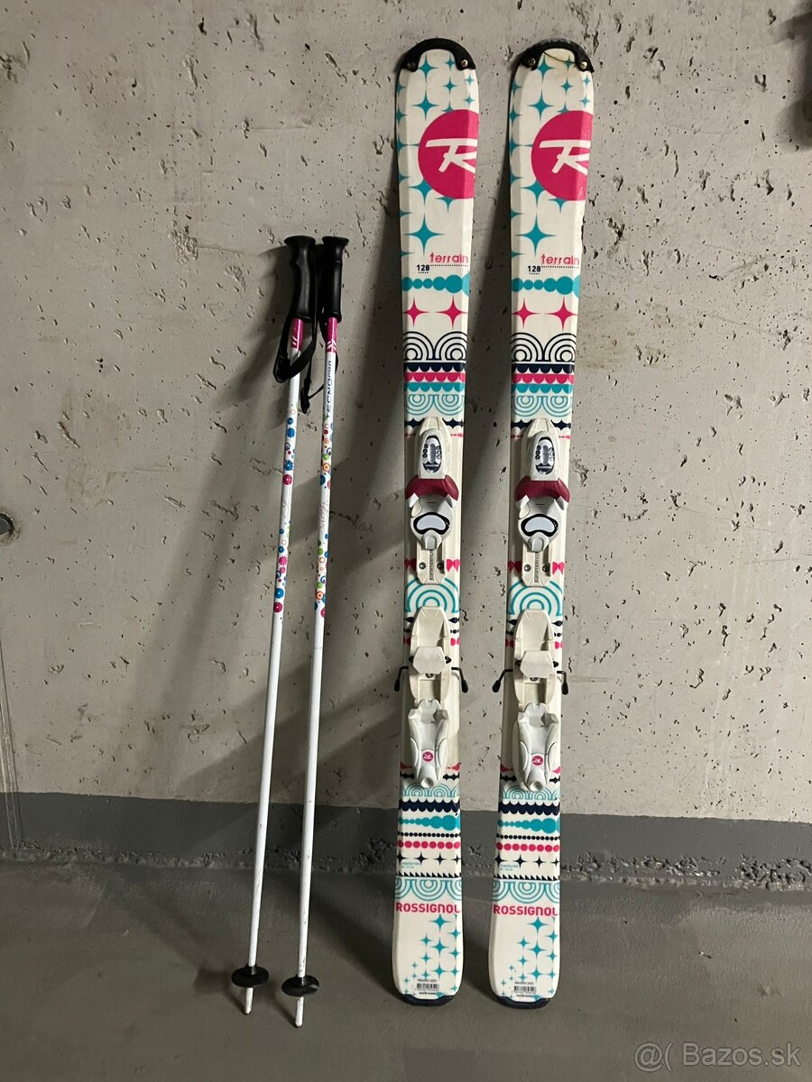 Predám zachovalé dievčenské lyže Rossignol Terrain 128 cm dlhé aj s paličkami. Lyže sú v dobrom stave, vhodné pre začínajúcu lyžiarku. Na pravej lyži sú nejaké nedostatky, ktoré boli detailne opravené epoxidom, a teda na funkčnosti im nič nechýba. Kvôli tomu však lyže predávam za zníženú cenu.