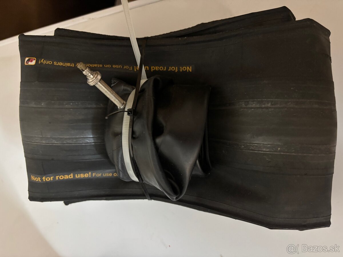 Predám nevyužívaný trenažér. V cene je opora predného kolesa, rychloupinák a pribalím aj 27,5 palcový plášť aj dušu v prípade záujmu. Cena 50€
