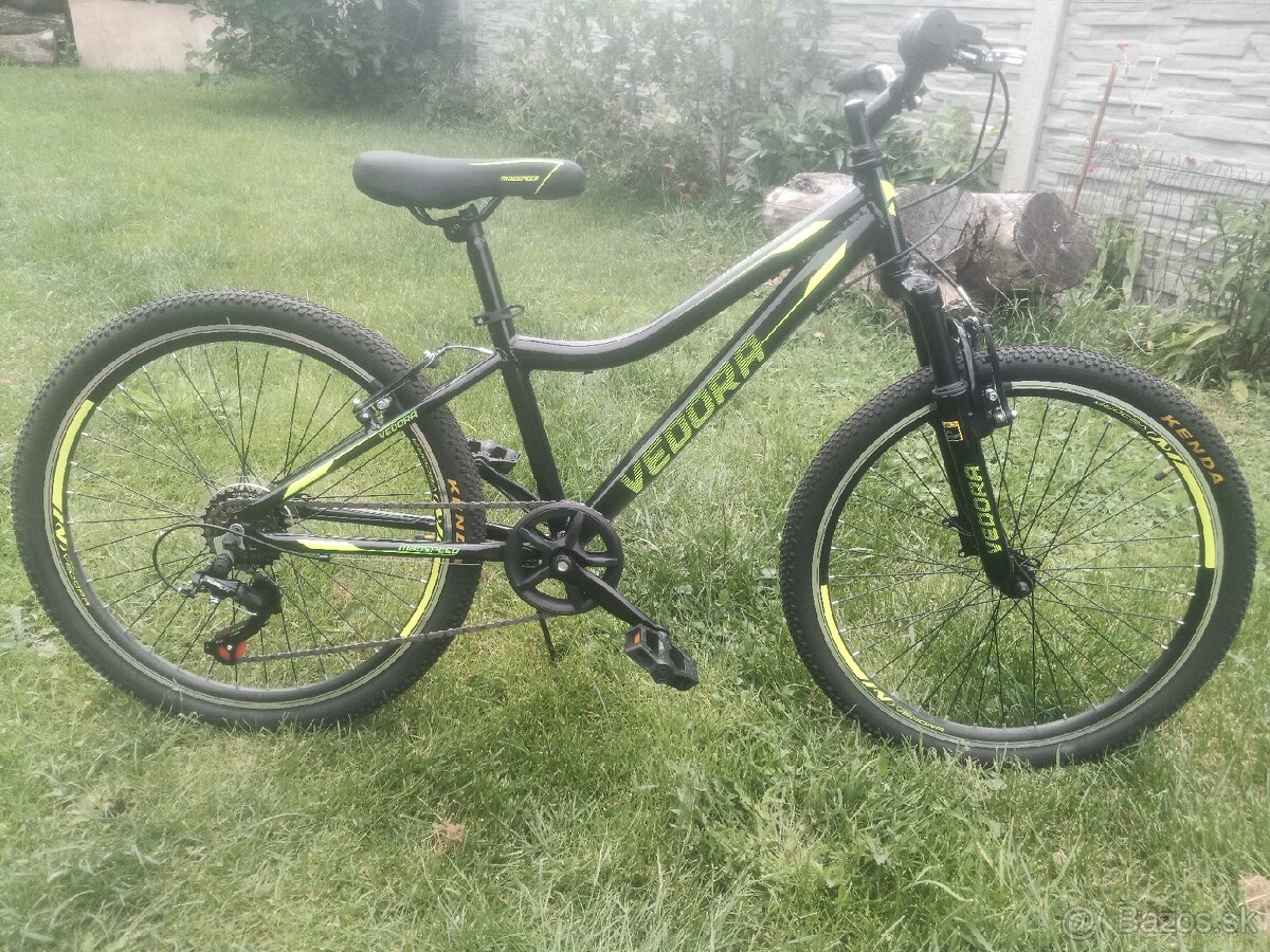 Predám kvalitný horský bicykel Vedora, veľkosť kolies 24, rám aluminium odľahčený, veľkosť 12.5, prevod Shimano Tourney 8 rýchlostí.