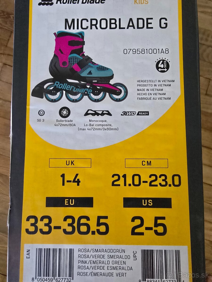 Dievcenske kolieskove korcule po jednom dietati, nastavitelne na dlzku chodidla 21-23cm. PC:75eur