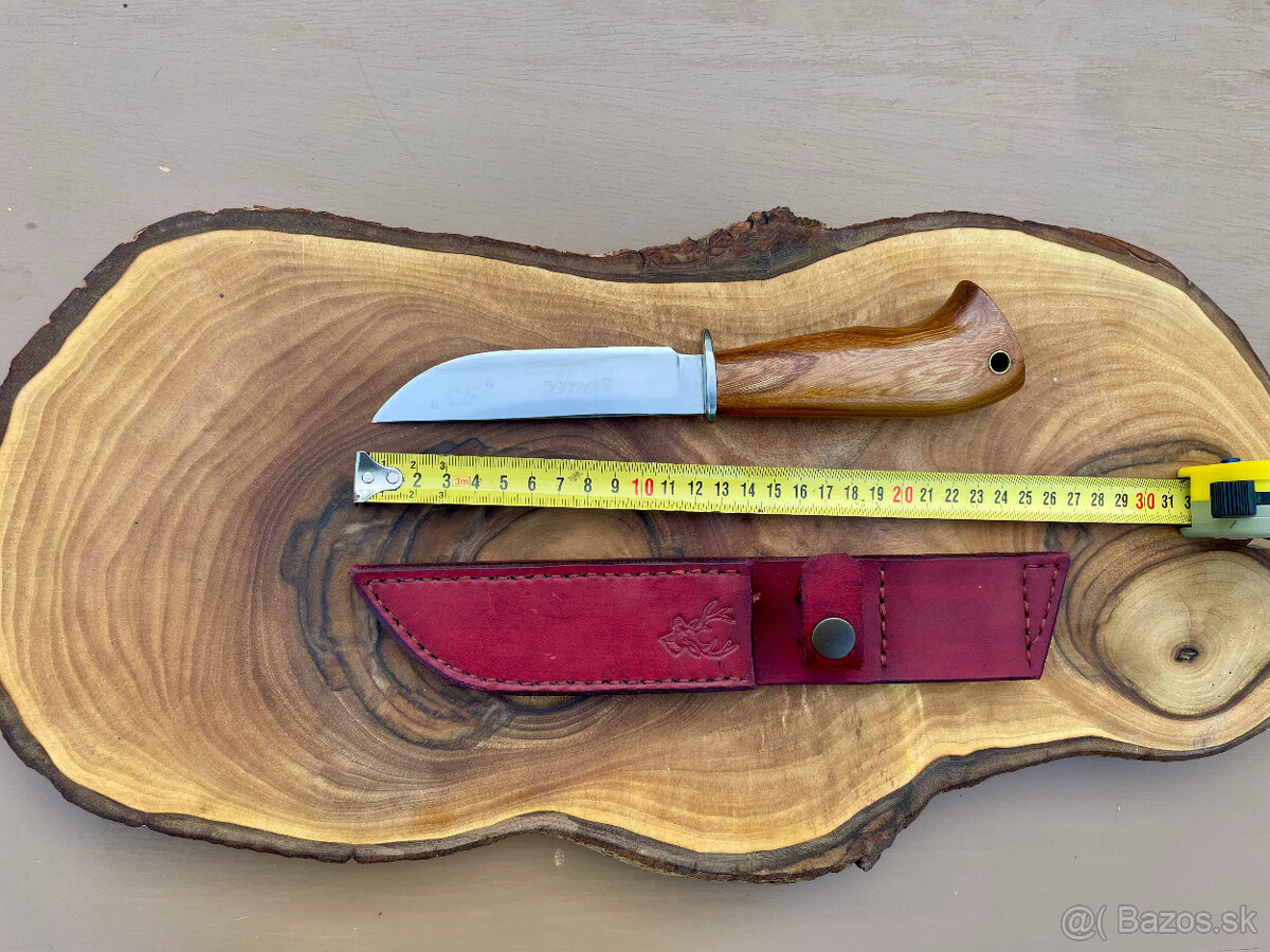 Ponúkam na predaj nôž vykovaný z uhlíkovej ocele BOHLER, čepeľ dlhá 12 cm, hrubá 4,1 mmm, široká 26 mm. Rúčka – drevo brest. Púzdro hovädzia hladenica, ručne šité na rozmer noža.