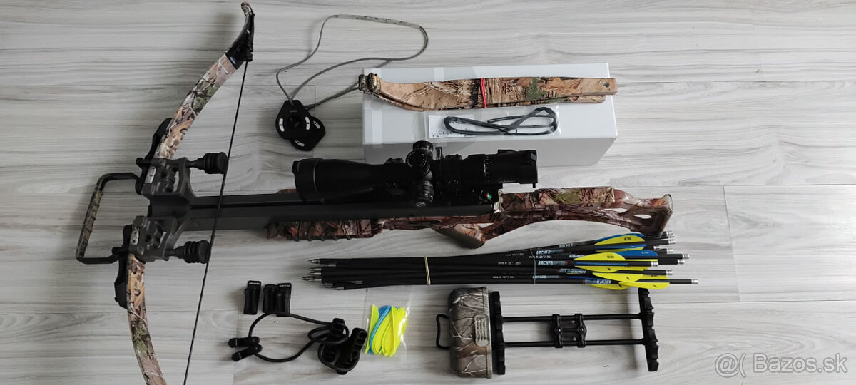Predám kušu Excalibur bulldog 380.Komplet príslušenstvo:Náhradné ramená,tetiva,Stringer,držiak na šípy,nová hlava-Riser,lano,letky,tlmiče,16šipov ArcheopterX.Optika:HAWKE Airmax 30 WA SF IR Compact 4-16×44 (AMX IR) Kuša ma nainštalované tlmiče Air brake+Ex act fit.HHA nieje súčasťou predaja.Možnosť predaja bez Optiky.Predám s dovodu prechodu na iný model